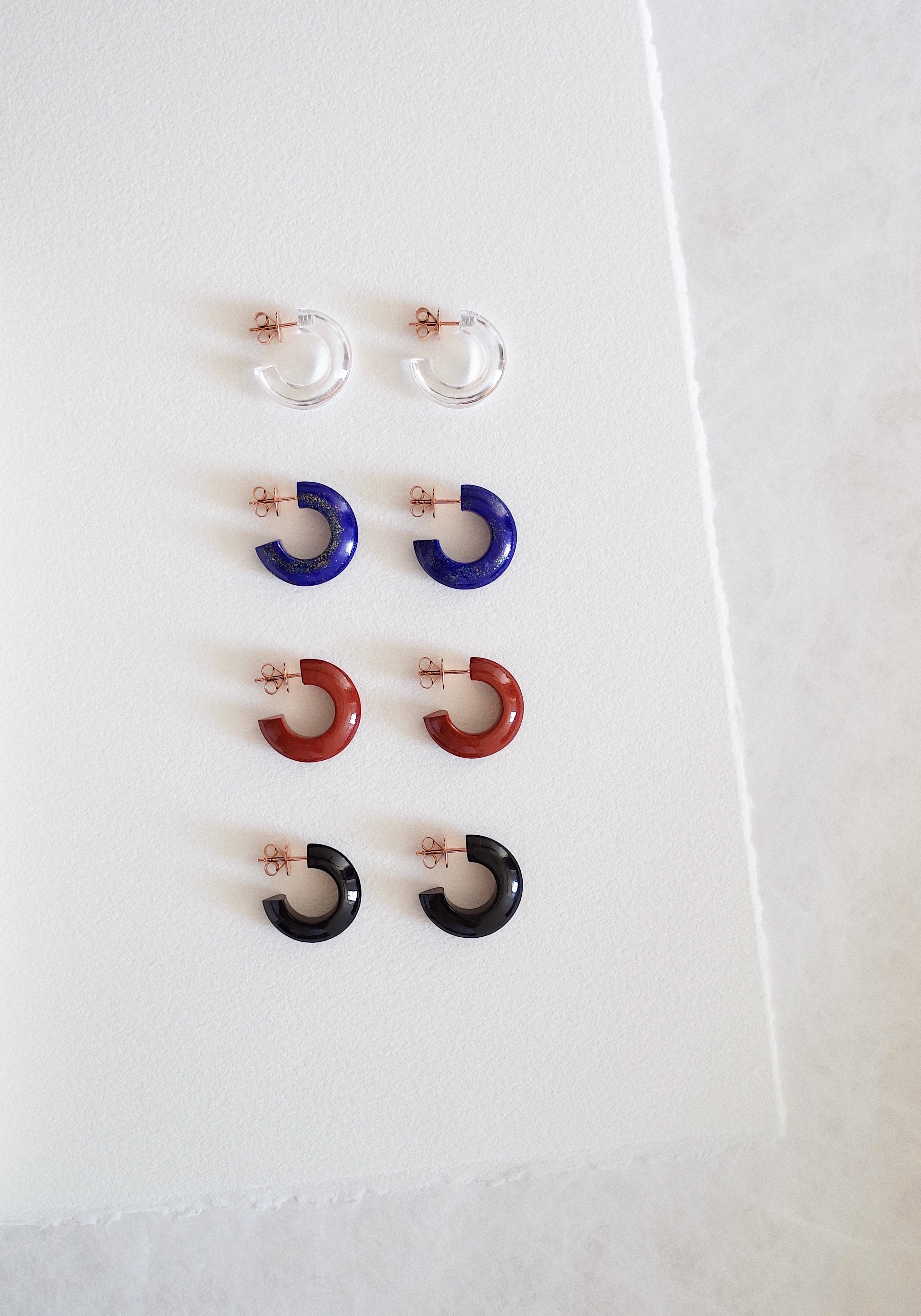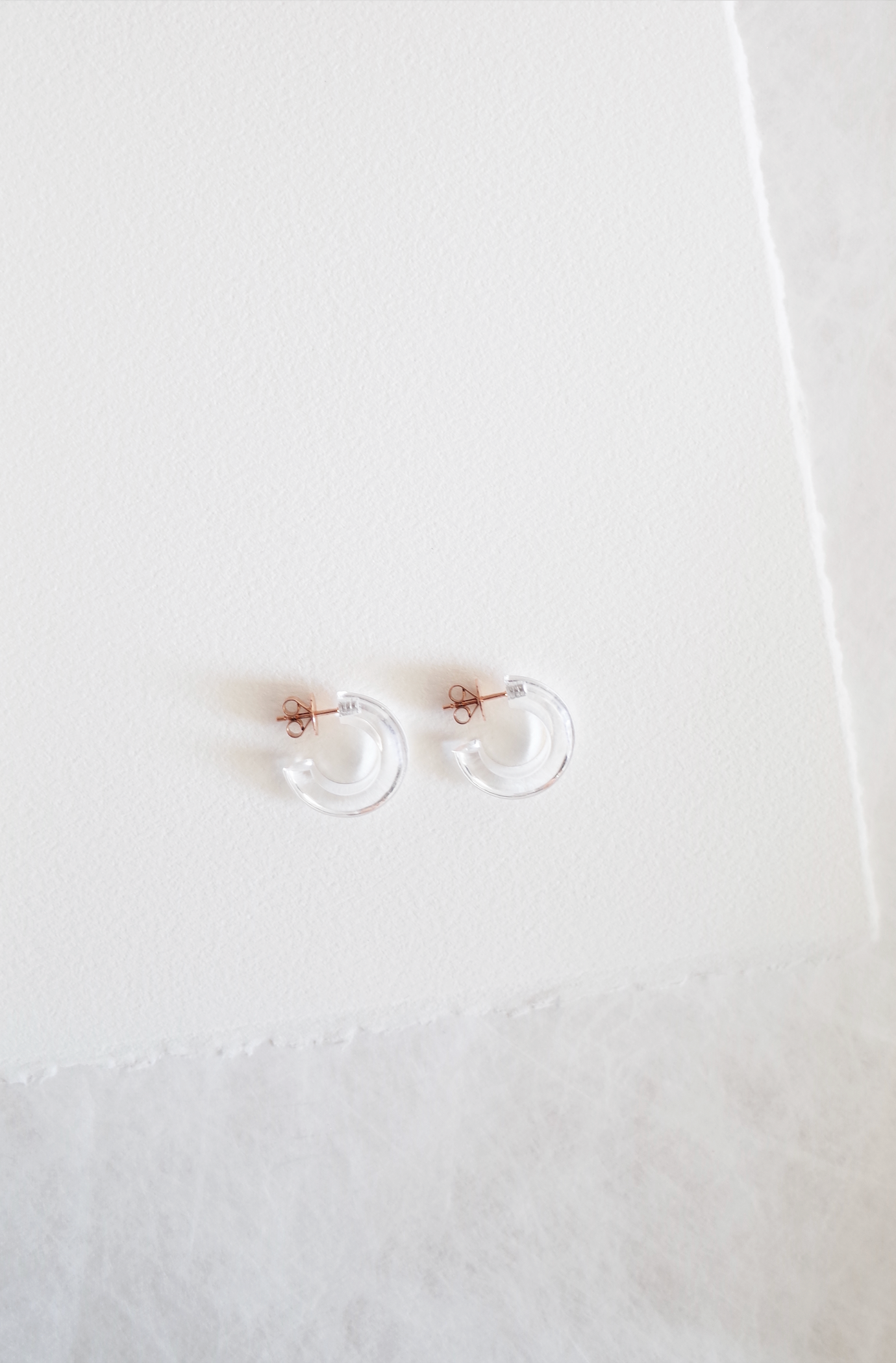 Introducing the Terra Hoops: Elegant hoop earrings crafted from Crystal Quartz with 14k rose gold accents. The rich contrast between Crystal Quartz and gold brings a touch of sophistication and luxurious contrast. Bold and yet refined element to any look.